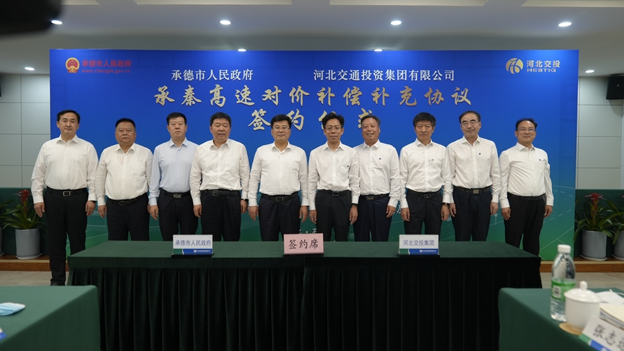 6月14日,承德市人民政府與河北交通投資集團(tuán)有限公司舉行綠色能源及交通項(xiàng)目深度合作簽約儀式。承德市委書記柴寶良,河北交投集團(tuán)黨委書記、董事長王國清出席簽約儀式并講話。承德市長王亞軍、河北交投集團(tuán)總經(jīng)理齊樹平代表雙方進(jìn)行簽約。承德市副市長陸文龍,河北交投集團(tuán)副總經(jīng)理?xiàng)罨⑸健⒖当?、趙文忠出席簽約儀式。王國清表示,此次協(xié)議的簽訂,標(biāo)志著雙方合作翻開了新篇章。交投集團(tuán)將繼續(xù)踐行國企的責(zé)任擔(dān)當(dāng),主動融入承德